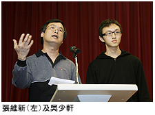 城大創(chuàng)意媒體學(xué)院成立於1998年,旨在培訓(xùn)能融合理論與實踐、掌握藝術(shù)與科技知識及具備文化觸覺的媒體專才。在短短數(shù)年間,學(xué)院學(xué)生已在本港及國際多項賽事上奪得重要獎項,並參與業(yè)界的多項創(chuàng)作。在今天舉行的捐贈儀式暨導(dǎo)賞會上,三名曾分別應(yīng)邀創(chuàng)作廉政公署創(chuàng)作三維「智多多」卡通動畫系列及勇奪「數(shù)碼港網(wǎng)頁設(shè)計比賽」冠軍的創(chuàng)意媒體學(xué)院學(xué)生——蔡騰翼、吳少軒及張維新,更有幸得以參與《劍雪浮生》選段《文成公主送嫁》舞蹈演出的虛擬佈景(virtual set)創(chuàng)作。蔡騰翼及吳少軒均為主修動畫創(chuàng)作的本科生,負責(zé)構(gòu)思及創(chuàng)作背幕影像,張維新則主修新互動媒體,負責(zé)協(xié)助進行電腦程式及影像投射的設(shè)計。幾位同學(xué)揉合了濃厚的中國文化元素及嶄新的媒體電腦科技,製作出豐富多姿、與舞蹈演出絲絲入扣,可被視作虛擬佈景的影像。蔡騰翼及吳少軒表示:「文成公主是唐代的人物,在創(chuàng)作構(gòu)思階段,我們參考了很多有關(guān)唐代背景的書,最後製作出吻合舞蹈情節(jié)並能引發(fā)觀眾聯(lián)想的影像。」由張維新設(shè)計的電腦程式,則能把影像配合舞蹈演出的節(jié)奏作出雙影像的投射。幾位