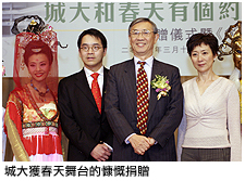 為表揚春天舞臺為大學(xué)所作的貢獻,城大於3月16日隆重舉行「城大和春天有個約會——捐贈儀式暨《劍雪浮生》導(dǎo)賞」,除了舉行支票頒贈儀式外,更設(shè)有導(dǎo)賞環(huán)節(jié),讓學(xué)生有機會與春天舞臺藝術(shù)工作者進行面對面的交流,進一步培育學(xué)生的視藝修養(yǎng)。