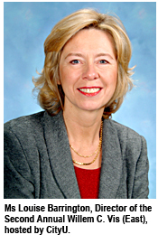 The School of Law has entered a promising team in the second annual Willem C Vis (East) Moot Competition hosted by CityU, 4-10 April. About 180 students from 18 law schools in Asia, America and Europe, their coaches and professional arbitrators are meeting for the oral arguments. Last year's launch of the Hong Kong version of the original Vis Moot, held annually in Vienna, is another example of the University's committment to the internationalization of our campus and opening doors to collaboration with respected tertiary institutions beyond Hong Kong's borders.