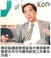 陳忍昌講座教授一直致力從事有關電子封裝及組裝、失效分析、可靠性工程等研究工作,並積極與工業界合作,進行應用科研。由陳教授領導的電子封裝及組裝暨失效分析及可靠性工程中心(EPA中心)獲天祥公證行支持,在環保電子產品設計、製造和封裝領域上提供最先進而深入的研究,協助廠商為全球用戶設計及製造環保電子產品。陳教授洞悉大學與業界合作的重要性。他表示:「結合大學與業界的力量,看準市場需要,以提升生產力和品質為目標,才是應用研究的正確路向。城大一直與工業界緊密合作,教學和研究工作均獲不少廠商支持,可見我們的應用研究是適時適切的。」陳教授亦表示在未來幾年,EPA中心會聯同天祥公證行繼續就《危害物質管制指令》(RoHS)進行深入研究,探討業界應如何配合新的管制措施。