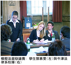 鎮定,擊敗牛津大學隊,最後雙方以1比1的分數結束比賽。牛津大學代表兼比賽評判Mr Sardar Abbas Khan高度讚揚城大隊伍。他指出:「城大隊在是次比賽中有出色的表現,雖然兩隊的表現旗鼓相當,但城大隊的陳述技巧高明,陳述者更經常與評判保持眼神接觸,這就是他們勝出的理由。」
