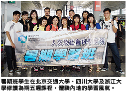 學分制內地暑期班是人文及社會科學學院今年新推出的課程,安排學生往內地大學上課,首四週為修課式課程,內容涵蓋哲學、宗教、翻譯、電影、中國近代史、公共政策等,由城大及內地大學的教授任教,學生每修畢一科可獲三個學分。第五週為專題學習,學生透過參觀名勝如青城山、峨眉山、大同雲崗石窟、內蒙古、黃山等,了解中國的文化遺跡,並把參觀體驗撰寫學習報告。