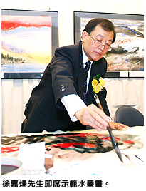 徐先生被譽為「後現代水墨畫」的始創者,近年作品打破了幾千年傳統的框框,進入了他一直追求的藝術理想——抽象水墨畫世界。他對城大也