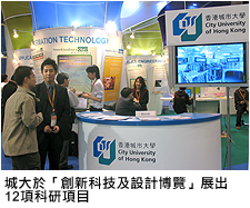 技及設計方案引進市場,以提高貿易、製造和服務等行業進軍世界市場的競爭力。參與這次活動再次印證城大致力推動創新文化,並將其科研成果應用到香港的社會及經濟層面。是次活動於11月21日至23日在香港會議展覽中心舉行,吸引逾30,000家企業的代表參觀,包括廠商及貿易商、中國內地的民營企業,以及世界各地有意拓展亞洲市場(尤其是中國市場)的公司。
