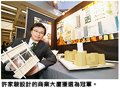 建築學副理學士課程學生許家駿在設計銅鑼灣一幢新的商業大廈時,考慮到四周環境缺乏綠化元素,於是嶄新地在商廈加入空中花園和平臺花園的結構,為繁忙的商業區注入綠化色彩。