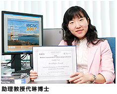 會議的論文比賽共分三個組別:分別是無線通訊及網絡系統中的「物理層/媒體存取控制分層」、「網絡層」和「服務及應用層」組別,參賽的論文超過2,000份,當中700份獲選入圍,每組只設一個最佳論文奬。代琳博士參賽的論文題目是「Selective relaying in Orthogonal Frequency Division Multiplexing (OFDM) multihop cooperative networks」。她在論文中提出如何有效改善高效傳輸技術「正交頻分複用」(OFDM)在協同網絡中的傳輸方式。她說:「這個構思既可