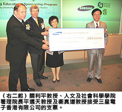 | 香港城市大學(xué)(城大)中文、翻譯及語言學(xué)系五名語文學(xué)榮譽(yù)文學(xué)士(韓語專修)學(xué)生獲韓國企業(yè)三星電子香港有限公司頒發(fā)奬學(xué)金,表揚(yáng)他們的傑出學(xué)術(shù)成績。 城大中文、翻譯及語言學(xué)系在2007-08學(xué)年推出本港首個主修韓語的語文學(xué)榮譽(yù)文學(xué)士課程(韓語專修),藉此鼓勵更多學(xué)生認(rèn)識韓國文化。透過課堂學(xué)習(xí)和提供交流機(jī)會,該課程協(xié)助學(xué)生從不同層面了解韓國的文化風(fēng)俗及語言。 為鼓勵修讀該課程的學(xué)生,三星電子香港有限公司舉辦了一項(xiàng)學(xué)術(shù)比賽,邀請參賽者以「對韓國文化的熱誠」或「韓國文化在國際舞臺上扮演的角色」為題提交學(xué)術(shù)簡報(bào),並根據(jù)學(xué)生對韓國文化的了解及研究,選出五名表現(xiàn)突出的學(xué)生,各頒發(fā)一萬元獎學(xué)金。