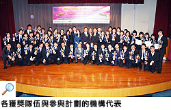 出席頒獎(jiǎng)禮的嘉賓有城大常務(wù)副校長(zhǎng)唐叔賢教授、商學(xué)院院長(zhǎng)魏國基教授、副院長(zhǎng)陳順源教授、市場(chǎng)營(yíng)銷學(xué)系系主任周南教授以及各參與機(jī)構(gòu)的代表。他們都讚揚(yáng)城大學(xué)生在這次「?jìng)艹鰧W(xué)生市場(chǎng)顧問計(jì)劃」中表現(xiàn)出色,發(fā)揮無窮創(chuàng)意,為各個(gè)機(jī)構(gòu)開拓營(yíng)銷商機(jī)。