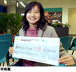 香港城市大學(城大)創意媒體學院二年級學生李燕鳳憑錄像短片《我可不可以坐在你身旁》奪得「突破框框國際青年錄像及攝影比賽」DV錄像青年組冠軍。