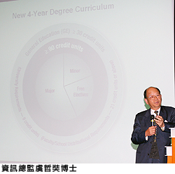 署理副校長(本科生教育)林群聲教授及資訊總監虞哲奘博士在論壇上與教職員及學生分享籌備推行新學制的進展。