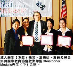 香港城市大學(城大)五名學生憑著優秀的學術表現及領導才能,獲龍傳基金選拔,參與世界公民計劃,分別前往瑞士及美國參加以「全球道德價值的互補與互融」為主題的考察活動,了解作為世界公民應擔負的責任及其重要性。