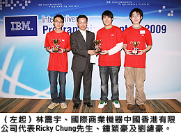 香港城市大學(城大)電腦科學系三名學生憑豐富的程式設計知識及團隊精神,於國際商業機器(IBM)中國香港有限公司舉辦的大學生資料庫程式設計比賽中勇奪冠軍。