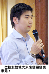 校友趁此聚會(huì),表達(dá)欣賞城大的發(fā)展,並就城大如何提升形象提出建議。一名視障校友感謝城大對(duì)傷健學(xué)生所作的支援。此外,部分校友提議城大在多媒體等策略發(fā)展領(lǐng)