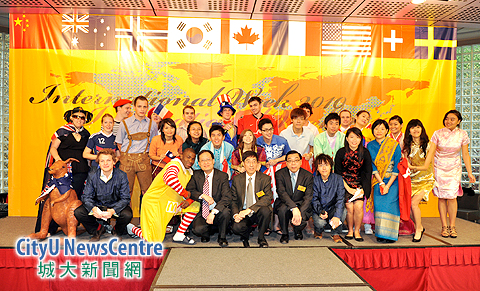 | 香港城市大學(城大)內地及對外事務處2月1至5日舉辦國際周,重點活動包括2月4日舉行的國旗巡遊、國際民族服裝表演及世界新年嘉年華。來自澳洲、法國、挪威、波蘭、南韓、西班牙、瑞士、美國和內地的世界各國學生,穿上民族服裝,手持所屬國家的國旗在校園內巡遊,同時介紹各民族慶新年的習俗。 城大校長郭位教授(前排左四)出席活動時表示,城大2010-2015年策略性發(fā)展計劃依據五項引導方針制訂,首項方針就是以學生為本的「促進學生學業(yè)成就和事業(yè)發(fā)展」。「我們致力培育你們成為專才,擁有卓越的專業(yè)知識和公民精神,以及成功必需的品格和毅力,」郭教授說。 副校長(發(fā)展及對外關係)王世全教授(前排左五)和副校長(學生事務)林群聲教授(前排左三)出席了國際民族服裝表演活動,與眾學生同歡共樂。 |