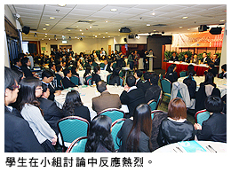 晚宴隨後就招聘畢業(yè)生的困難和策略進行小組討論,由副校長(學(xué)生事務(wù))林群聲教授擔(dān)任研討主持,參與討論的講者包括歷峰亞太有限公司亞太區(qū)人力資源總監(jiān)孔于人先生、電訊盈科有限公司個人客戶營銷處營銷業(yè)務(wù)流程管理副總裁梁淑翹女士、美國友邦保險(百慕達)有限公司資深區(qū)域總監(jiān)楊偉誠先生,以及億世集團有限公司行政總裁許慶得先生。小組討論後,僱主和學(xué)生共晉自助晚餐之際,互相交流意見和經(jīng)驗。