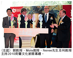 「2010荷蘭文化節有利促進五年策略性發展計劃的進程,即與其他著名學府發展策略夥伴關係,以提升城大研究和教學的質素、廣度及影響力,」城大校長郭位教授在10月12日的開幕禮上說。