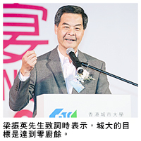 梁振英先生致辭時(shí)說:「今晚學(xué)生會(huì)舉辦的城大夜宴很有意義,兩千多名學(xué)生和教職員一齊參加,無不盡歡。減少和處理廚餘是城大社會(huì)責(zé)任的工作重點(diǎn),我希望今天的夜宴可以開個(gè)頭。宴會(huì)上,有107席同學(xué)同意將八個(gè)餸減至六個(gè)餸。希望今晚的減餸行動(dòng)可以讓同學(xué)經(jīng)常思考浪費(fèi)食物的問題,從源頭上減少廚餘。」