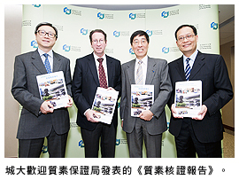香港城市大學(xué)(城大)歡迎大學(xué)教育資助委員會(huì)(教資會(huì))轄下質(zhì)素保證局(質(zhì)保局)11月30日發(fā)表的2010年《香港城市大學(xué)質(zhì)素核證報(bào)告》。 質(zhì)保局報(bào)告讚揚(yáng)城大優(yōu)秀教育質(zhì)素,並肯定城大積極提升教學(xué)工作。