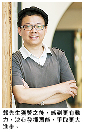 郭先生說,人最難的是認清自己,而今次的傑出教學獎好似一面鏡子,為他反映出旁人眼中所見的自己。他自述一向很喜歡這份教學工作,獲獎之後「看到自己的做法原來真能獲得大家讚許,感到更有動力」,決心繼續(xù)發(fā)揮潛能,爭取更大進步。