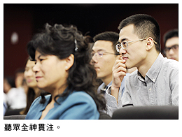 城大校長郭位教授致歡迎辭,代表城大感謝潘教授及眾位中國工程院院士光臨。郭教授說:「現代社會需要感性與理性結合的人才,城大的邵逸夫創意媒體中心就是藝術和科技結合的象徵。今天我們很榮幸能邀得潘院士前來城大演講,他既是著名科學家,又是一流的書法家,他的演講讓我們更深刻了解感性與理性結合的重要意義。」