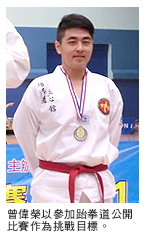 我在中學(xué)時(shí)代沒甚麼人生方向,後來參加了AYP計(jì)劃,才逐漸學(xué)會(huì)為自己設(shè)下目標(biāo),明白必須有完備的計(jì)劃,才能有理想的結(jié)果,而且要組織一個(gè)有承擔(dān)、肯努力執(zhí)行計(jì)劃的團(tuán)隊(duì)。我還明白,即使結(jié)果不如理想,也不要埋怨,而應(yīng)檢討自己是否努力不足或執(zhí)行有誤,有則改之,無則加勉。另外,我熱愛跆拳道,並已練習(xí)多年,便計(jì)劃以此為目標(biāo)。首次參加大型公開賽事,原本僅為積累經(jīng)驗(yàn),不料卻贏得亞軍,可說是超額完成計(jì)劃。