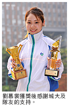 同時,創意媒體學院理學士(創意媒體)二年級學生劉慕裳在六位候選健兒當中脫穎而出,榮膺「大專全年最佳女子運動員」稱號。