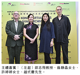 邵志飛教授在儀式上說:「我們擁有全香港最好的動作擷取實驗室,很高興中華國術(shù)總會與我們合作。這是承傳非物質(zhì)文化遺產(chǎn)的機會,特別是中華武術(shù)文化,香港有很多武術(shù)大師,我們十分榮幸有機會參與這項工作。」