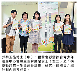 「快樂動起來-生命成長計劃」旨在透過一系列的小組活動,協(xié)助兒童及青少年建立正面情緒,推動個人積極面對成長的壓力和挑戰(zhàn),並訂立個人目標,提升個人幸福感,促進他們愉快健康地成長。計劃獲得社會福利發(fā)展基金贊助。