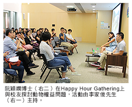 香港城市大學(城大)校友聯絡處於7月31日晚舉行的Happy Hour Gathering系列校友活動,是次主題為「愛護動物 尊重生命」,邀請了城大動物醫學院客座研究員阮穎嫻博士探討人類與動物的關係、動物福利等議題。活動由校友及救狗之家義工李家俊先生主持。