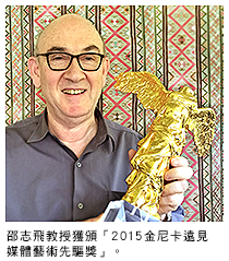 創意媒體學院邵志飛教授榮獲「奧地利國際電子藝術競賽」頒發的「2015金尼卡遠見媒體藝術先驅獎」。