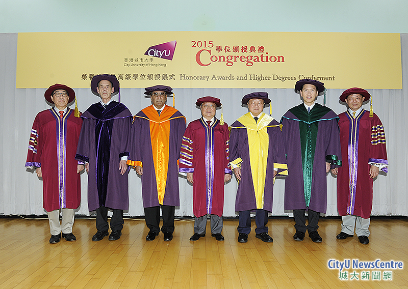 香港城市大學(xué)(城大)副監(jiān)督梁乃鵬博士11月20日頒授榮譽(yù)博士學(xué)位予陳智思先生,GBS,JP、鄭崇華先生、赫伯特.格萊特教授、夏大衛(wèi)先生,以表彰他們對教育及社會福祉的重大貢獻(xiàn)。頒授儀式在城大的學(xué)位頒授典禮上同時舉行。