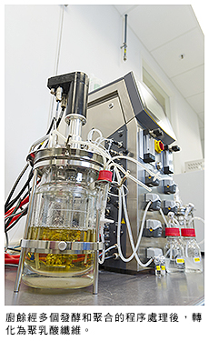 連博士說:「利用廚餘生產聚乳酸是雙贏甚至三贏的局面:一來減輕對堆填區和環境的負擔;二來為紡織界提供環保的原料;這亦是傳統石油化工以外,一個更環保、更可持續的生產聚乳酸方法。」