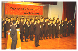 In his speech, President H K Chang encouraged student leaders to work hard for their fellow students. Newly elected Students' Union president, Sunny Wong, together with members of his executive committee, Union Council , Editorial Board, and 19 departmental societies, vowed to work diligently for student voters.