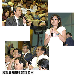 在提問時,員工與學生表達了對加深合作、自資課程、學生歸屬感、員工士氣以及溝通等問題的關(guān)切。當員工提出可能出現(xiàn)的合併對城大發(fā)展有何影響的問題時,張校長重申,迄今爲止,四個工作組只討論合作而非合併。唐叔賢教授補充說:「我們應(yīng)當把加深合作看作額外的機會而非威脅。」員工應(yīng)當理解,除非會加強城大的教育價值和研究活動,否則大學不需要從事任何合作。