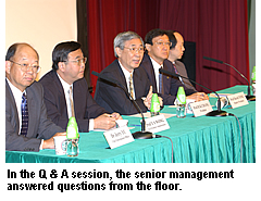 副校長唐叔賢、副校長(本科生教育)高彥鳴教授、副校長(行政)黃玉山教授、資訊總監(jiān)虞哲奘博士在張校長的簡介和陳述之後,與他一起在臺上回答提問。