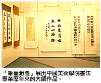 「書法是中國特有的藝術(shù)形式,今天展出的中國美術(shù)學(xué)院教師的作品,對(duì)於香港的書法同好來說,的確是一個(gè)欣賞和體會(huì)這種藝術(shù)形式的難得機(jī)會(huì)。」中國文化中心主任鄭培凱教授7月7日爲(wèi)「筆墨瀲灩」書法展剪綵儀式上說。該展覽現(xiàn)正在城大藝?yán)扰e行,展期至8月29日。