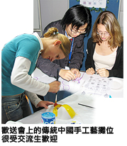 本地學生為了令交流生留下珍貴、難忘的回憶,於歡送會上設置多個傳統中國手工藝攤位,包括中國書法、臉譜、繩結等,讓交流生體驗中國文化。