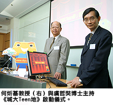 啟動儀式由何教授與城大資訊總監虞哲奘博士主持。隨著《城大Teen地》吉祥物「City仔」在電腦動畫中為網頁揭幕,《城大Teen地》便正式面世。