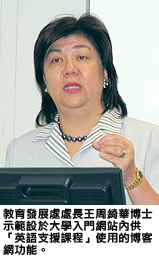 資訊總監(jiān)虞哲奘博士在會上解釋了「英語支援課程」所牽涉的技術支援和管理問題。他表示,大學利用「維客」(wiki)和「博客」(blog)技術,為網(wǎng)上導師和學生建立溝通平臺。