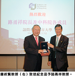 城大的科研發展多年來得到同儕的支持,更得到中國科學院(中科院)的關顧。11月13日,中科院院長路甬祥教授親率六人代表團訪問城大。