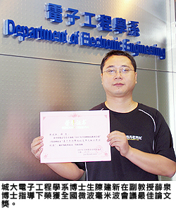 陳建新說﹕「這一次是我第一次獲得論文奬,對我激勵很大,希望日後能把使用相關技術的功率功分器產品化,為微波產業作出貢獻。」