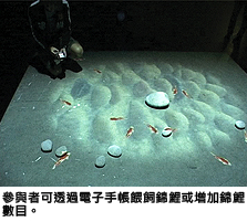《魚池》是蔡志聰修讀創意媒體學院時的創作,意念來自城大中國花園的魚池。作品獨特之處是將虛擬和現實連貫一起,運用投影機把地面幻化成一個虛擬錦鯉魚池,當參與者進入池內,錦鯉便會作出反應,產生互動效果。參與者更能透過PDA電子手帳來餵飼錦鯉及增添錦鯉數目。