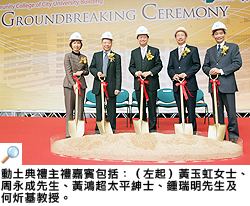 鍾先生在致歡迎辭時強調,新大樓對城大和專上學院的發展均相當重要。他說:「今天的動土典禮標誌著專上學院和大學發展的一個新里程碑。城大一直透過專上學院為社會提供優質副學士教育,學院目前有6,000多名學生。當大樓於2010年落成後,我們預計學生人數將會繼續上升。」