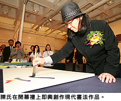 陳先生跳出傳統書法窠臼,在書法作品中引入西方觀念,創出彩色書法。他在書寫傳統漢字的基礎上發揮創意,自創新文字,甚至在書法中糅合中英文字。城大希望透過舉辦展覽,讓市民欣賞國際知名藝術家的優秀作品。