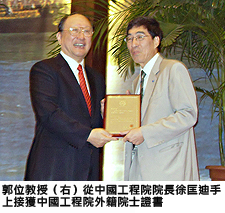 中國工程院2007年度增選三位外籍院士,郭位教授是其中一位。郭位教授從中國工程院院長徐匡迪手上接過中國工程界最高學術稱號證書。