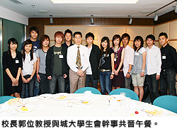 香港城市大學(城大)校長郭位教授7月14日中午與學生會幹事共晉午餐,冀加強與同學的溝通、了解他們的需要。