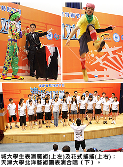 除了辯論比賽之外,兩所大學的學生還做了藝術表演,為活動增添歡樂氣氛。天津大學北洋藝術團合唱團獻唱一首內蒙著名歌曲,城大則派出創意媒體學院三年級學生姚紹豪和兩名魔術學會的學生黃定邦袁健威,表演花式搖搖及魔術。最後,兩所大學學生合唱「明天會更好」,喻意兩所大學今後將有更緊密的交流和合作。