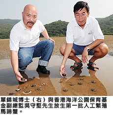 城大進(jìn)行人工繁殖馬蹄蟹放生研究