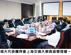 除了了解院校發(fā)展近況和參觀三校新校區(qū)之外,訪問團(tuán)與三所院校領(lǐng)導(dǎo)就院系建設(shè)、學(xué)科優(yōu)勢和發(fā)展以及具體合作等範(fàn)圍進(jìn)行深入討論,並達(dá)成多項(xiàng)協(xié)議,其中包括聯(lián)合培養(yǎng)博士生、共同開辦學(xué)位課程、擴(kuò)大交換生計(jì)劃、由城大協(xié)助培訓(xùn)內(nèi)地管理人員等。另外,訪問團(tuán)更與上海交通大學(xué)討論在該校園設(shè)立城大駐滬辦事處的可能性和方案。