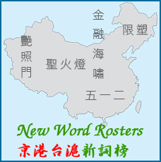 只在一地出現(xiàn)的新詞頗具地區(qū)色彩。2008年香港上榜新詞大都與港人日常生活有關(guān),如中銀發(fā)行的「奧運(yùn)鈔」(奧鈔),曾掀起一陣炒風(fēng);令不少人血本無歸的雷曼「迷債」(迷你債券),至今糾纏未清;經(jīng)濟(jì)下滑,令物價(jià)下跌至數(shù)年前沙士出現(xiàn)時(shí)的水平,也即「SARS價(jià)」;為對(duì)抗通漲,「格價(jià)網(wǎng)」應(yīng)運(yùn)而生;禽流感似乎成為香港地方病,今年再度來襲,港府故技重施,以「禁雞令」對(duì)付。此外,一大批潮流用詞、網(wǎng)絡(luò)語言等詞語也開始進(jìn)入各主流媒體,如「屈機(jī)」、「潮拜」、「o嘴」、「潮媽」、「潮點(diǎn)」等。